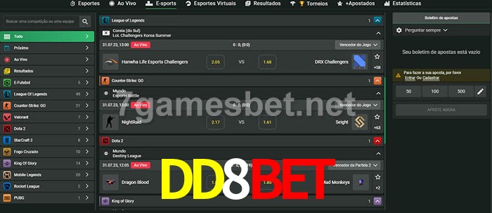 O DD8Bet oferece uma grande seleção de opções de apostas em e-sports com probabilidades competitivas